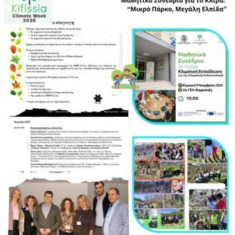 Στο πλαίσιο της Kifissia Climate Week, την Κυριακή 9 Νοεμβρίου, το 2ο & 3ο Δ. Σ. Ν. Ερυθραίας, το 8ο Δ. Σ. Κηφισιάς, , καθώς και το 7ο Δημοτικό Σχολείο Νέας Φιλαδέλφειας, συμμετείχαν στο Μαθητικό Συνέδριο για το Κλίμα, μια δράση συμμετοχής, έμπνευσης και ενεργού μάθησης, όπου παρουσιάστηκαν οι δράσεις δημιουργίας ενός Πάρκου Τσέπης στη γειτονιά μας από τους μαθητές και τις μαθήτριες μας..