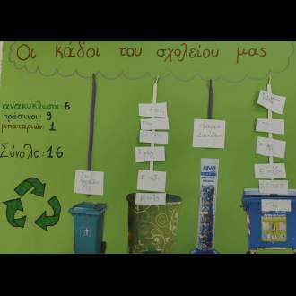 Οι μικροί πράκτορες των Α' και Β' τάξεων του δημοτικού μας σχολείου, εντοπίσανε όλους τους κάδους που υπάρχουν τόσο στον εξωτερικό, όσο και στον εσωτερικό του χώρο και παρουσιάσανε τα αποτελέσματα σε μορφή '' χάρτη''.