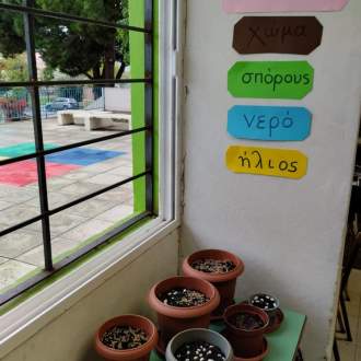 Οι μαθητές και οι μαθήτριες του Α2, με τη στήριξη και καθοδήγηση της υπεύθυνης εκπαιδευτικού του τμήματος, δημιούργησαν έναν μικρό λαχανόκηπο μέσα στην αίθουσά τους.