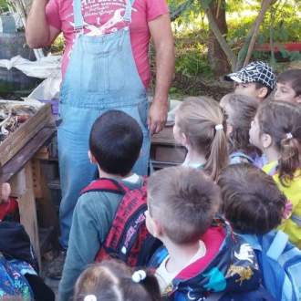 Μόλις περάσαμε το δασάκι, φτάσαμε σε ένα όμορφο αγρόκτημα, όπου μας υποδέχτηκε ένα χαμογελαστό σκιάχτρο και ο κύριος Μιχάλης, ο ιδιοκτήτης. Με ένα τραγούδι για χαλάρωση ξεκινήσαμε την ξενάγηση και την εξερεύνηση της φύσης.