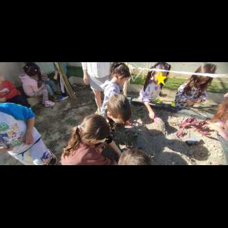 Βγήκαμε σήμερα στην αυλή του νηπιαγωγείου μας και ζήσαμε μια μοναδική, «φθινοπωρινή» εμπειρία γεμάτη δράση και χαρά. Τα παιδιά συμμετείχαν σε ένα μικρό… λιομάζωμα! Με ενθουσιασμό χτένισαν απαλά τα κλαδιά της ελιάς, άπλωσαν το πανί κάτω από το δέντρο και παρακολούθησαν πώς οι ελιές έπεφταν πάνω του μία-μία. Στη συνέχεια, συγκέντρωσαν με προσοχή τον καρπό, αναγνωρίζοντας τη σπουδαιότητα της ελιάς και νιώθοντας ότι συμβάλλουν σε μια παραδοσιακή διαδικασία που χαρακτηρίζει τον τόπο μας.