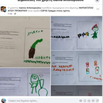 Οι μαθητές/ριες του Νηπιαγωγείου Πηλίου -μετά από πρόσκληση της Ελληνικής Εταιρίας Προστασίας της Φύσης και του WWF Ελλάς- αφού ενημερώθηκαν, μέσω παραμυθιών και βίντεο, για τους κινδύνους που απειλούν το περιβάλλον και τον πλανήτη μας, κατέγραψαν και αποτύπωσαν εικαστικά τις επιθυμίες τους προς τον Πρωθυπουργό της Ελλάδας και τους παγκόσμιους ηγέτες που θα συναντηθούν στη Βραζιλία για να συζητήσουν τα μέτρα που λαμβάνουν για τη κλιματική κρίση, στην 30η διεθνή συνάντησή που συγκαλεί ο ΟΗΕ για το θέμα («Conference of Parties», COP30, Bραζιλία, 10-21 Nοεμβρίου 2025).