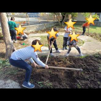 Οι εργασίες στον σχολικό μας κήπο άρχισαν. Οι μαθητές με την καθοδήγηση των εκπαιδευτικών έσκαψαν, φύτεψαν και πότισαν τα εποχιακά λαχανικά που συλλέχτηκαν για τον σκοπό αυτό.