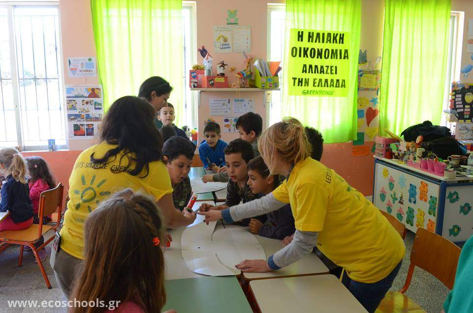 Τη Ρόδο, το νησί του Ήλιου, επέλεξε η Greenpeace Ελλάδας για να ξεκινήσει τις δράσεις της διεθνούς εκστρατείας της "Let's Solarize Greece". Εμείς είχαμε τη χαρά να φιλοξενήσουμε στο σχολείο μας μια ομάδα ακτιβιστών της οργάνωσης και να παρακολουθήσουμε ένα βιωματικό σεμινάριο για την ηλιακή ενέργεια και τους τρόπους αξιοποίησής της. Μάθαμε πώς λειτουργούν τα φωτοβολταϊκά συστήματα παίζοντας με διάφορα ηλιακά παιχνίδια κι ένα εκπληκτικό ηλιακό σιντριβάνι. Κατασκευάσαμε τους δικούς μας ηλιακούς φούρνους, όπου και ψήσαμε τα φανταστικά pan cakes που παρασκευάσαμε.