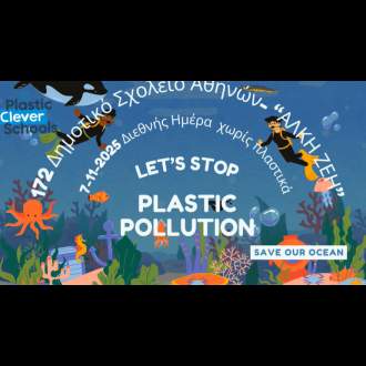 Το σχολείο μας συμμετείχε στο κάλεσμα των Plastic Clever Schools για τη Διεθνή Ημέρα κατά της Πλαστικής Ρύπανσης στις 7-11-2025. Οι μαθητές ενημερώθηκαν από ειδικούς επιστήμονες για το ζήτημα της πλαστικής ρύπανσης των θαλασσών, έκαναν τις δικές τους ερωτήσεις και ολοκλήρωσαν τη δράση τους με τη δημιουργία αφίσας και συνθήματος για τα πλαστικά μιας χρήσης.