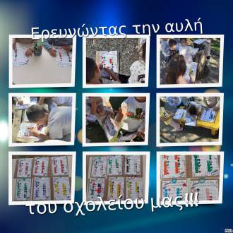 Ως “Μικροί ερευνητές σε δράση” προχωρήσαμε σε έρευνα της σχολικής αυλής. Τα παιδιά με το φύλλο καταγραφής ανά χείρας βγήκαν με χαρά στην αυλή για να κάνουν τις καταγραφές τους. Τι μπορεί κανείς να συναντήσει στη σχολική αυλή μας;