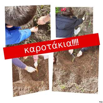 Φέτος επιλέξαμε να διαφοροποιήσουμε την καλλιέργεια στο σχολικό μας κήπο. Φυτέψαμε μικρά καροτάκια που μας έφερε μια μητέρα και ανυπομονούμε για την παραγωγή μας.