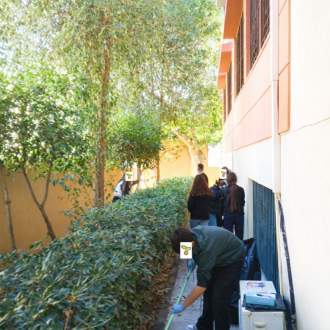 Το σχολείο μας βρίσκεται σε κεντρικό δρόμο του Ηρακλείου με πολλή κίνηση και δυστυχώς, πολλοί περαστικοί πετάνε τα σκουπίδια τους στον κήπο μας μέσα από τα κάγκελα. Πριν την εκπνοή του έτους αποφασίσαμε λοιπόν να καθαρίσουμε, ώστε μετά τις διακοπές να είμαστε έτοιμοι για τις ετοιμασίες του σχολικού λαχανόκηπου που σχεδιάζουμε να φυτέψουμε.