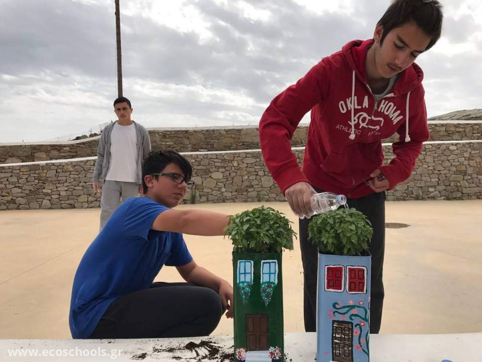 Με χρώματα και πολύ μεράκι τους μετέτρεψαν σε χαρούμενες γλάστρες και φύτεψαν μέσα τους ευωδιαστούς βασιλικούς.