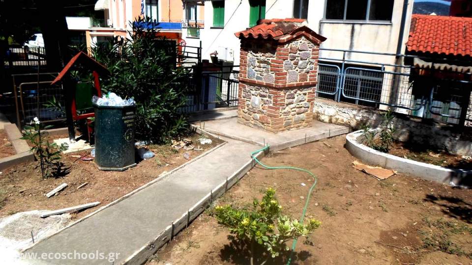 Έργα διαμόρφωσης του σχολικού κήπου έγιναν τον Ιούλιο με στόχο τη συγκράτηση του χώματος στις ρίζες των δένδρων (μια και το έδαφος είναι κατηφορικό), την αποστράγγιση των νερών, που λιμνάζανε και την καλύτερη διευθέτηση του χώρου.