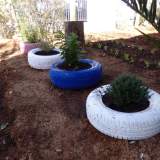 Βάψαμε παλιά λάστιχα αυτοκινήτου και τα μετατρέψαμε σε όμορφες γλάστρες για λουλούδια και αρωματικά.