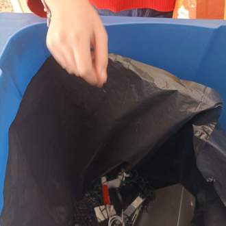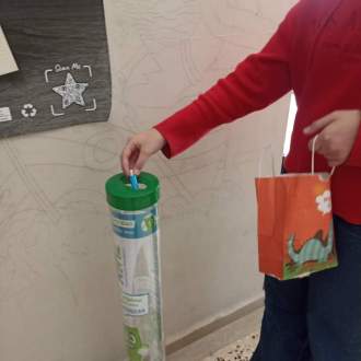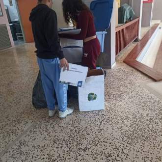 Τα παιδιά ευαισθητοποιούνται στην ανακύκλωση των ηλεκτρικών συσκευών. Ο κάδος που δημιουργήθηκε περιέχει αρκετά καλώδια, παλιούς χαλασμένους φορτιστές, μικρές ηλεκτρικές συσκευές και καμμένα χριστουγεννιάτικα λαμπάκια.