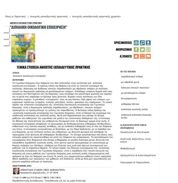 - ΑΝΟΙΧΤΗ ΕΚΠΑΙΔΕΥΤΙΚΗ ΠΡΑΚΤΙΚΗ: “ΟΙΚΟΚΩΔΙΚΑΣ” http://photodentro.edu.gr/oep/r/8532/656?locale=el
