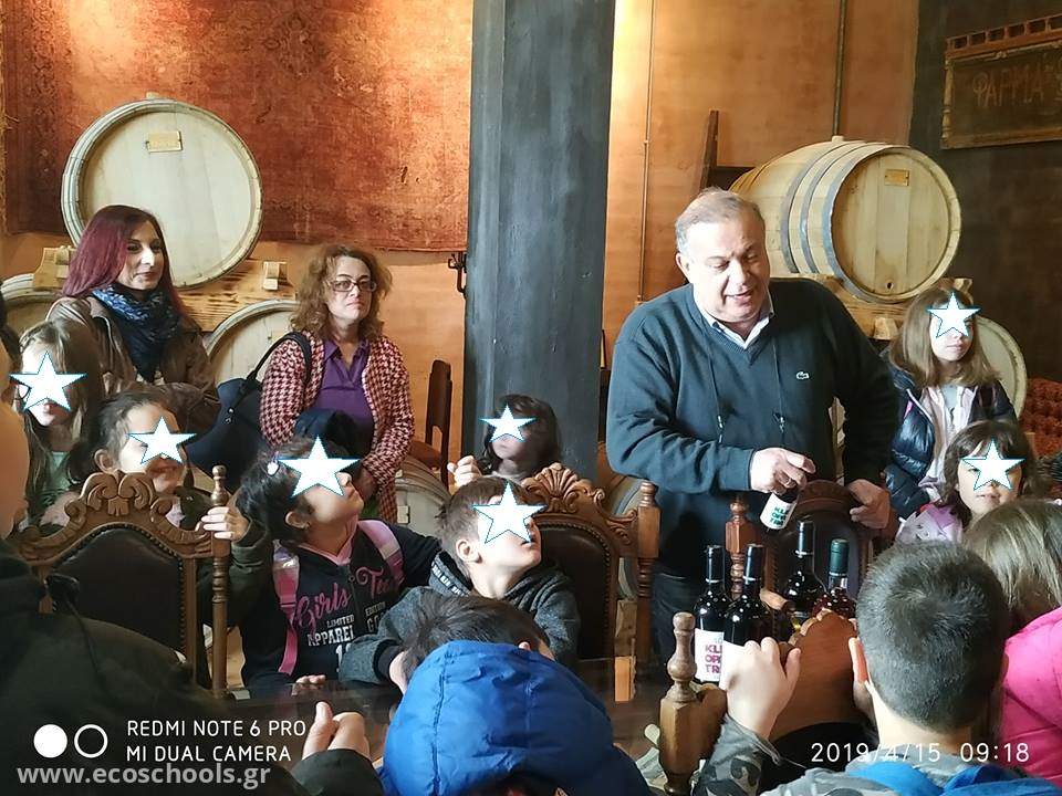 Ύστερα ανεβήκαμε στον πάνω όροφο, όπου είναι η αίθουσα εκδηλώσεων. Η επίσκεψη ολοκληρώθηκε με επίσκεψη τον χώρο της πισίνας, που βρίσκεται πίσω από το οινοποιείο, όπου οι μαθητές έφαγαν το δεκατιανό τους, πριν συνεχίσουμε για το υπόλοιπο πρόγραμμα της εκδρομής .Ήταν μια επίσκεψη, που χάρισε στα παιδιά πολύτιμες γνώσεις και εμπειρίες.