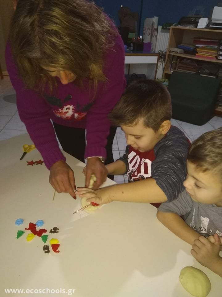 Φτιάξαμε χριστουγεννιάτικα στολίδια με αλεύρι και ζυμαρικά.