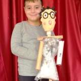 > Την προηγούμενη εβδομάδα τα παιδιά ολοκλήρωσαν τα πρόσωπα των ηρώων του παραμυθιού που θα ανεβάσουν στη σκηνή και άρχισαν να φτιάχνουν τα υπόλοιπα μέλη τους. Τα χέρια και τα πόδια φτιαχτηκαν από χάρτινα στενόμακρα ρολό χαρτιών κουζίνας και τα σώματα από κομμάτια αφρολέξ. Κάθε σώμα στηρίζεται σε ένα μακρύ ξύλο.