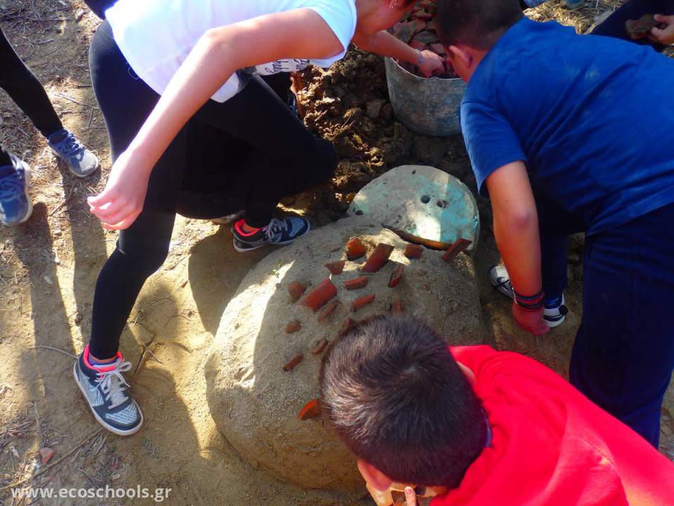 Οι μαθητές της Στ’ τάξης, πραγματοποιώντας επίσκεψη στις εγκαταστάσεις των σπιτιών Cob στην περιοχή του Νέσσονα, στο Συκούριο Λάρισας, ήρθαν σε επαφή με κτίσματα που έχουν κατασκευαστεί εξ ολοκλήρου από ανακυκλώσιμα υλικά, λάσπη και άχυρο, που αξιοποιούν κάθε είδους μορφή ενέργειας και τα οποία αποτελούν πρότυπο οικισμού βιοκλιματικών κατοικιών.