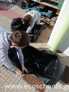 Πήραμε τα φτυαράκια μας σήμερα 6 Μαρτίου 2020 , ήρθε το χώμα μας και πιάσαμε δουλειά. Κόψαμε το γεωύφασμα τόσο όσο χρειαζόταν για να καλύψουμε τα καφάσια. Μετρήσαμε (τόσα τετράγωνα απο τη μια μεριά τόσα απο την αλλη). Αναλάβαμε πολύ δύσκολη δουλειά. Να μεταφέρουμε το χώμα με τα κουβαδάκια γεμίζοντας κάθε καφάσι. Φυτέψαμε μαρούλια, ανιθο μαϊντανό και σέλινο, πατάτες κρεμμύδια παντζάρια και καρότα! Μύρισε Άνοιξη...Ομόρφυνε η αυλή μας!!!!