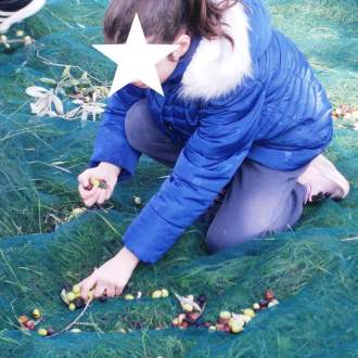 # Τα αγόρια εφοδιασμένα με ντέμπλες ράβδισαν με τις οδηγίες ενός επιστάτη- αρκετά ελαιόδεντρα σε κτήμα του ελαιοτριβείου Παπαδέλλη-Πλωμαρίτη στη Θερμή. Στη συνέχεια τα κορίτσια μάζεψαν τις ελιές, που είχαν πέσει πάνω στα δίχτυα με τα οποία είχε στρωθεί το χωράφι.