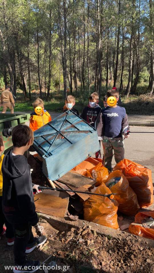 Οι μικροί οικολογικοί πράκτορες του Ε1 συμμετείχαν σε δράση καθαριότητας που έγινε από τον φορέα ΔιόνυSOS. Στα πλαίσια του εκπαιδευτικού προγράμματος «17 Παγκόσμιοι Στόχοι Βιώσιμης Ανάπτυξης» οι μαθητές/ήτριες με βιωματικό τρόπο έμαθαν να αγαπούν τη φύση και να φροντίζουν τη γειτονιά τους. Η συνεργασία του σχολείου μας με φορείς του Δήμου είχαν μεγάλη απήχηση στην τοπική κοινότητα και ευαισθητοποίησαν μικρούς και μεγάλους.