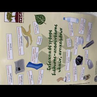 Στο σχολείο μας πραγματοποιήθηκε πρόσφατα μια σημαντική δράση ενημέρωσης για τα σκουπίδια και τον σωστό τρόπο διαχείρισής τους. Οι μαθητές παρακολούθησαν παρουσιάσεις και αφίσες με πληροφορίες για το πόσο χρόνο χρειάζονται διάφορα υλικά για να διαλυθούν στη φύση.
