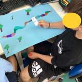 Οι μαθητές της Ε’ Δημοτικού στα πλαίσια του μαθήματος της Πληροφορικής δημιούργησαν επιτραπέζια με θέμα την ‘Κλιματική Αλλαγή’. Αρχικά έγινε η ευαισθητοποίηση των μαθητών διαμέσου συζήτησης και βίντεο για αυτό το σημαντικό περιβαλλοντικό ζήτημα. Στη συνέχεια πήραν χαρτόνια, μαρκαδόρους και ψαλίδια και δημιούργησαν τη δική τους πίστα, πιόνια και ζάρια. Το αποτέλεσμα ήταν εντυπωσιακό και οι μαθητές έμαθαν πολλά για το περιβάλλον παίζοντας παιχνίδια που δημιούργησαν οι ίδιοι.