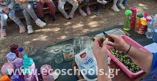 Αργότερα τις γευτήκαμε και φτιάξαμε ελαιόψωμα για να κεράσουμε τα παιδιά ενός άλλου νηπιαγωγείου που μας επισκέφθηκε. Έγινε μια γιορτή ελιάς με παιδιά, εκπαιδευτικούς, γονείς. Περάσαμε θαυμάσια και αναγνωρίσαμε την αξία του καρπού και τη σημασία του στη διατροφή μας.