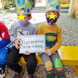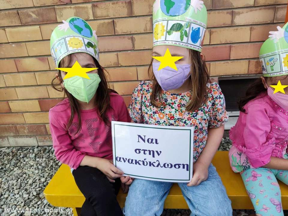Σαν μικροί οικολόγοι αποφασίσαμε να γράψουμε συνθήματα πάνω σε πλακάτ όπως «Ναι στην ανακύκλωση» «Όχι στην ρύπανση» «Μπορούμε να ζήσουμε μαζί» « Όχι φωτιά στα δάση» κ.λπ, για να θυμίζουμε στους φίλους, στους συγγενείς και γενικά σε όλον τον κόσμο πόσο σημαντικό είναι να σεβόμαστε το περιβάλλον μας!!!