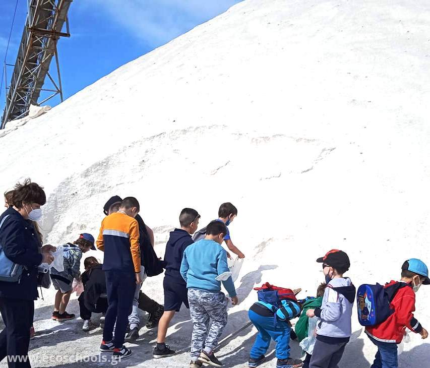 # Οι μαθητές ξεναγήθηκαν από τα στελέχη του ΚΠΕ Ηλ. Καλδέλλη και Θ. Χ#μιχαήλ, έμαθαν για τις πολλές και διαφορετικές χρήσεις του αλατιού, (συντήρηση τροφίμων, μαγείρεμα , διαλυτικό του πάγου) , ανέβηκαν στους αλατοσωρούς και μάζεψαν αλάτι σε σακουλάκια.