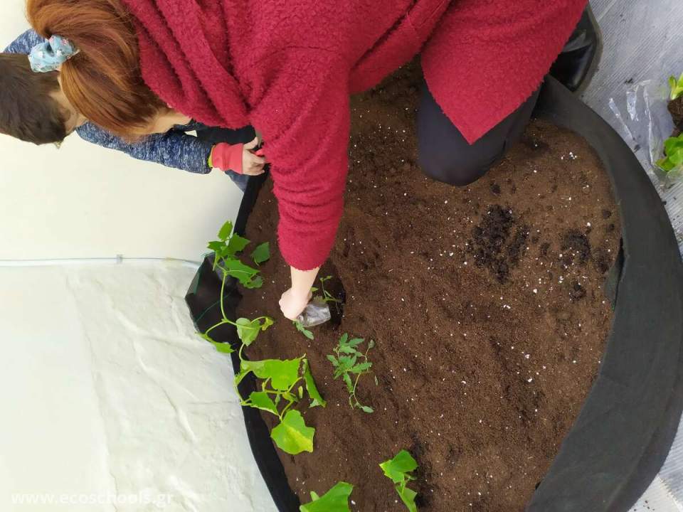 Τα σποράκια στο θερμοκήπιό μας βλάστησαν και είναι έτοιμα για μεταφύτευση. Σε μεγάλα παρτέρια , τα παιδιά με τη βοήθεια γονέων φύτευσαν τις ντοματούλες, αγγούρια, κολοκύθια, μελιτζάνες στο ένα παρτέρι. Ενώ στο άλλο φύτευσαν βότανα: Ρίγανη, θρούμπη, θυμάρι, λεβάντα, βασιλικό, δυόσμο και μέντα.