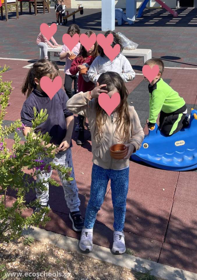 Τα παιδιά παρατήρησαν και συζήτησαν με τους συμμαθητές τους για τη σημασία της φροντίδας των ταϊστρών των πουλιών της αυλής μας. Αποφάσισαν ότι η φροντίδα τους είναι σημαντική για να διατηρηθεί η υγεία και η ευημερία των πουλιών. Έτσι, ανέλαβαν δράση, με το να τις καθαρίζουν και να τις γεμίζουν με φρέσκο νερό και τροφή.