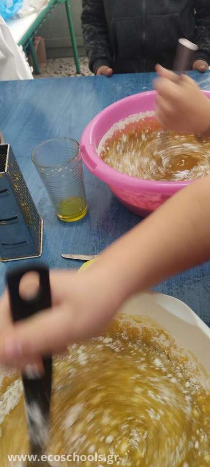 Με τα δικά μας προϊόντα,λάδι από τις ελιές του σχολείου μας (πριν λίγο καιρό είχαμε μαζέψει τον καρπό και τον πήγαμε στο λιοτρίβι,όπου πήραμε το δικό μας λάδι)και πορτοκάλια από τις πορτοκαλιές μας,φτιάχνουμε υπέροχα λαδοκουλουρα για όλους μας!Αύριο θα γίνει η διανομή!Ευχαριστούμε πολύ το φούρνο του χωριού μας που ανέλαβε το ψήσιμο.Τον κ.και την κ.Μπασα.