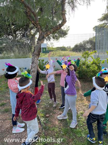 Μεταμφιεστήκαμε σε πουλιά και ψάξαμε για τροφή, νερό και κατάλληλα σημεία για να φτιάξουμε τις φωλιές μας στην αυλή του σχολείου μας! .Απολαύσαμε ένα ηλιόλουστο μεσημέρι και ανακαλύψαμε πολλά!