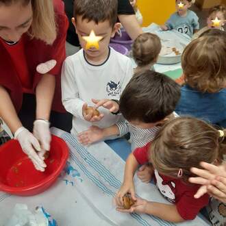Οι μικροί μας επιστήμονες δεν σταματούν να πειραματίζονται! Με τη ζυγαριά στο χέρι, τα παιδιά εξερευνούν τα παράγωγα του σταφυλιού: ρόγες, σταφίδες, μουστοκούλουρα… και μαθαίνουν με τον πιο διασκεδαστικό τρόπο τις έννοιες «βαρύτερο» και «ελαφρύτερο».