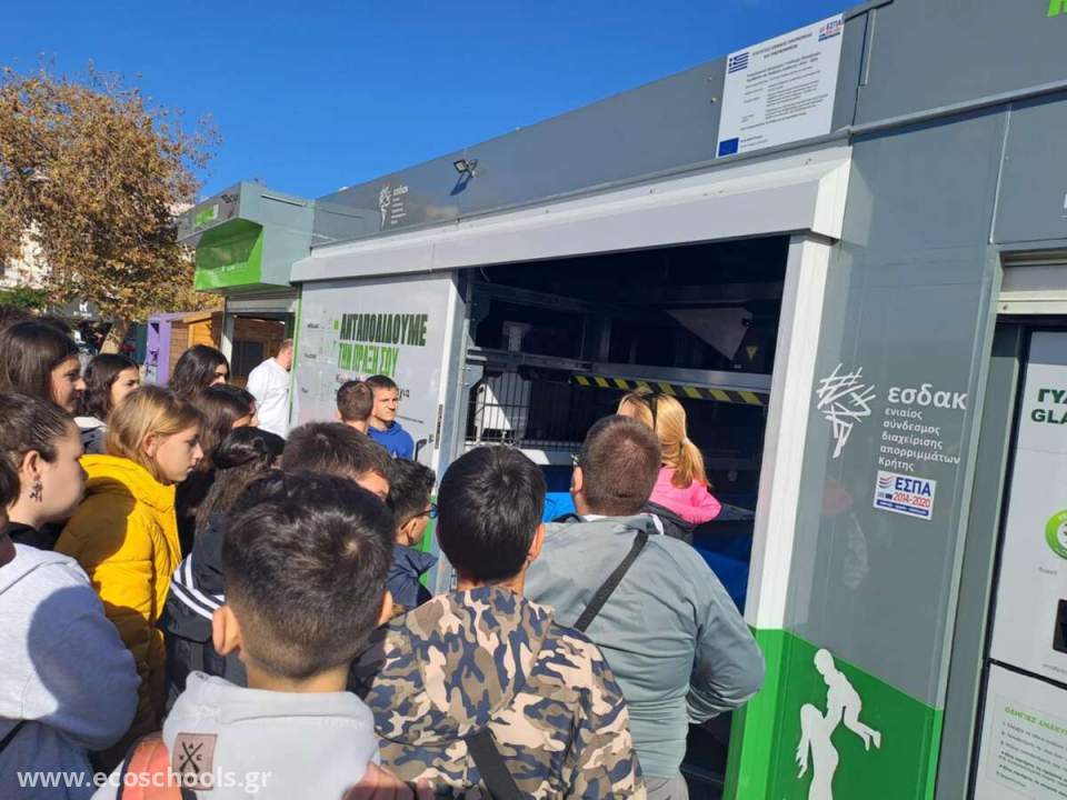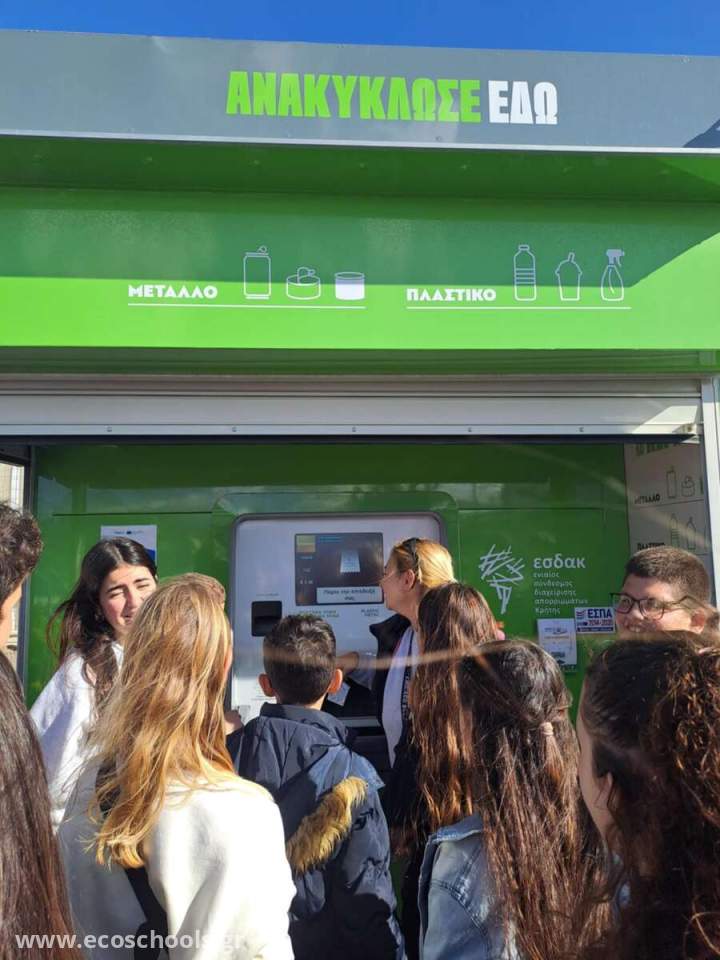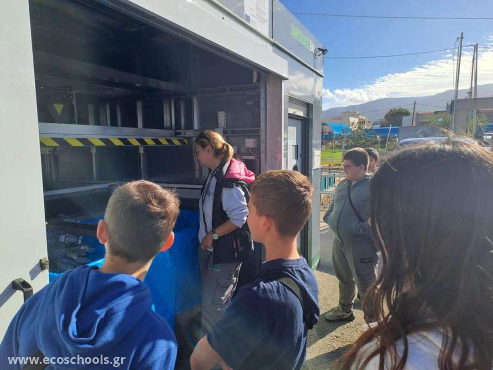 Την Τρίτη 10/12/202 επισκεφτήκαμε τον χώρο ανακύκλωσης του Δήμου, όπου οι μαθητές ενημερώθηκαν για την ανακύκλωση και την ανταποδοτικότητά της. Οι μαθητές έφεραν 560 περίπου συσκευασίες και μία σακούλα καπάκια, τα οποία είχαν συγκεντρώσει στο σχολείο. Αφού ανακύκλωσαν τις συσκευασίες, δώρισαν ένα ποσό σε κοινοφελές ίδρυμα και πήραν μια επιταγή για σούπερ μάρκετ της Σητείας, με την οποία θα αγοράσουν τρόφιμα για το κοινωνικό παντοπωλείο.