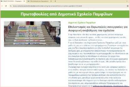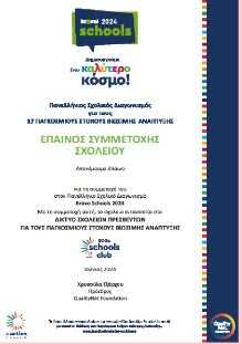 To σχολείο μας συμμετείχε στον διαγωνισμό Bravo Schools με θέμα «Εθελοντισμός και τον Αειφορικό Μετασχηματισμό». Μεταξύ άλλων βραβεύτηκε για τις δράσεις αναβάθμισης της σχολικής αυλής και τις περιβαλλοντικές του ενέργειες.