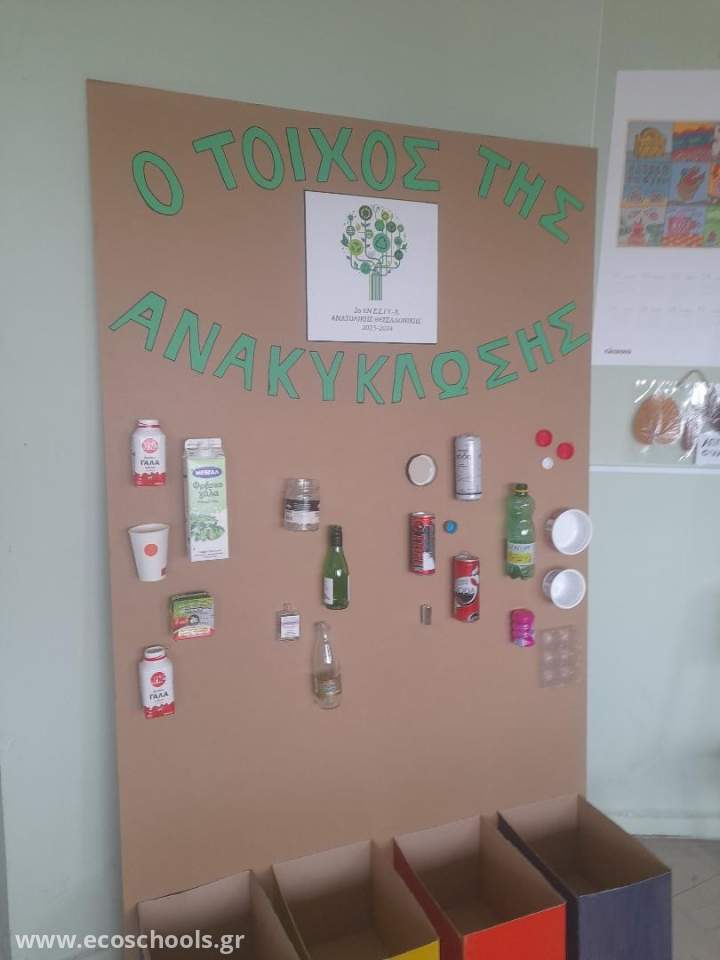 Με την κατασκευή του τοίχου της ανακύκλωσης, οι μαθητές ευαισθητοποιήθηκαν για την ανακύκλωση, έμαθαν για τα υλικά που μπορούν να ανακυκλωθούν και για τον τρόπο που αυτά καθαρίζονται και τοποθετούνται σε ξεχωριστούς κάδους. Η κατασκευή τους θα βοηθήσει και τους συμμαθητές τους να κατανοήσουν και να υιοθετήσουν την συνήθεια της ανακύκλωσης.