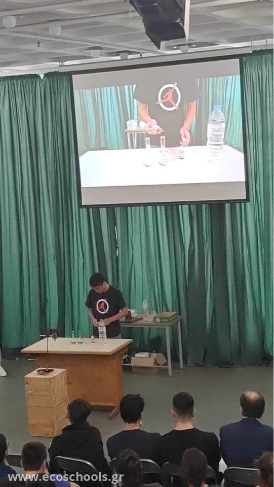 Η Ημέρα Θετικών Επιστημών έκλεισε με την παρουσίαση του θέματος «Ανθρώπινη δραστηριότητα και κλιματική αλλαγή» από τις Περιβαλλοντικές ομάδες του σχολείου, με επιβλέπουσα την καθηγήτρια Θεοδώρα Κοπτερίδου. Οι μαθητές και μαθήτριες των περιβαλλοντικών ομάδων του Γυμνασίου και του Λυκείου του Εκπαιδευτηρίου “ΤΟ ΠΑΓΚΡΗΤΙΟΝ” παρουσίασαν πειράματα σε σχέση με το κλίμα και την ανθρωπογενή κλιματική αλλαγή. Η εργασία τους πραγματοποιήθηκε με αφορμή τη συμμετοχή τους στις δράσεις του εθνικού εκπαιδευτικού προγράμματος «Μαθαίνοντας και Διδάσκοντας για την Κλιματική Αλλαγή, EDU4CLIMA» που υλοποιήθηκε από το «Εργαστήριο Χημικών και Περιβαλλοντικών Διεργασιών» του τμήματος Χημείας του Πανεπιστημίου Κρήτης, στον Φινοκαλιά Λασιθίου.