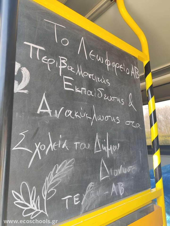Τη Δευτέρα 12 Φεβρουαρίου οι Δ’ και Ε’ τάξεις του σχολείου μας επισκέφτηκαν το κλειστό γυμναστήριο Άνοιξης. Συμμετείχαν σε μια οικολογική δράση με θέμα την ανακύκλωση. Εκεί οι μαθητές έμαθαν να αναγνωρίζουν το σήμα της ανακύκλωσης. Επίσης, συζήτησαν για τους διαφορετικούς κάδους που υπάρχουν ανάλογα με τα υλικά που τοποθετούνται μέσα σε αυτούς, ενώ μίλησαν για τη σκοπιμότητα αυτού του εγχειρήματος. Κατανόησαν έννοιες όπως ο υπερκαταναλωτισμός και σκέφτηκαν τρόπους προκειμένου να βελτιώσουν τις καταναλωτικές τους συνήθειες, έμαθαν για τα είδη των συσκευασιών που πρέπει να προτιμώνται και ... όλα αυτά ... μέσα σε ένα «Οικολογικό λεωφορείο»!