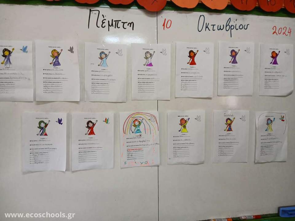 << Όταν έχουνε πόλεμο >> του ποιητή Γιώργου Μαρίνου. Έπειτα έφτιαξαν το δέντρο της Αγάπης και κάθε παιδί έγραψε πάνω στο φύλλο του μια λέξη , όπως αγάπη …