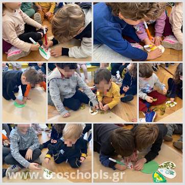 Γίναμε μια μεγάλη ομάδα και, αφού πρώτα μαζέψαμε μερικά φύλλα από τον κήπο μας για να διακοσμήσουμε τα πέταλα του λουλουδιού μας, πιάσαμε τα αγαπημένα μας χρώματα και αρχίσαμε να ζωγραφίζουμε.