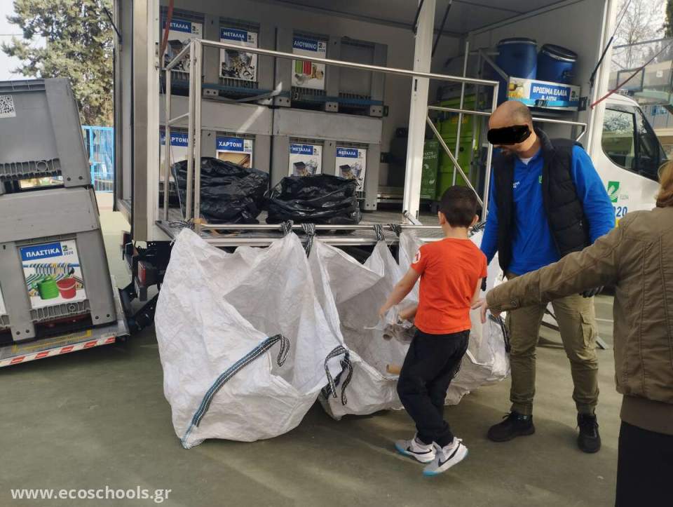 Οι μαθητές έφεραν ΥΛΙΚΑ ΑΝΑΚΥΚΛΩΣΗΣ και παρακολούθησαν τη διαδικασία συλλογής και διαλογής τους. Πιο συγκεκριμένα, ένα Κινητό Πράσινο Σημείο (ΚΠΣ) με πλήρωμα δύο ατόμων, υπεύθυνων του προγράμματος, μας μίλησαν για τη σωστή ανακύκλωση. Στη συνέχεια ακολούθησαν διαδραστικές ερωταποκρίσεις μεταξύ του πληρώματος και των παιδιών. Τέλος οι μικροί μαθητές είχαν τη ευκαιρία να παρακολουθήσουν ζωντανά όλες τις λεπτομέρειες σχετικά με τη σωστή ανακύκλωση ενώ, συμμετείχαν και οι ίδιοι στην όλη διαδικασία διαλογής των ανακυκλώσιμων υλικών... Οι διαστάσεις του ΚΠΣ σε πλήρη έκταση ήταν περί τα 8 μέτρα, πλάτος 2,20 και ύψος 3,26. Για κάθε δράση γινόταν ενημέρωση /ευαισθητοποίηση από το εξειδικευμένο πλήρωμα.
