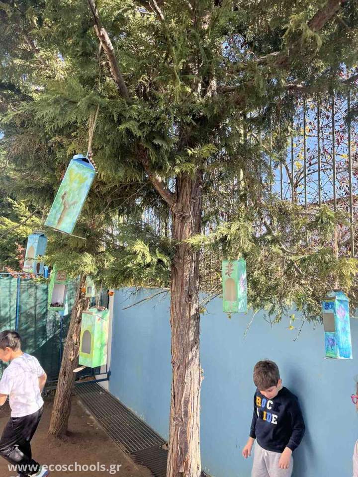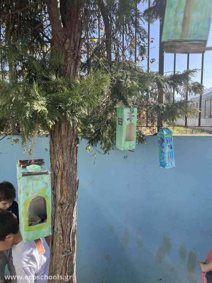 Η Α΄ Δημοτικού κατασκεύασε με μεράκι ταΪστρες πουλιών από άδειες χάρτινες συσκευασίες χυμού και γάλακτος. Ομόρφυνε η αυλή μας καθώς τις κρέμασαν στα δέντρα της αυλής και τα πουλιά της περιοχής βρήκαν καταφύγιο. Στηρίζουμε την κυκλική οικονομία και μειώνουμε το οικολογικό μας αποτύπωμα!