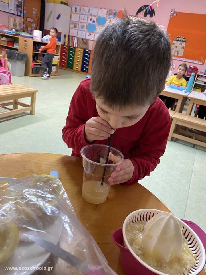 Κάναμε γευστική δοκιμή: δοκιμάσαμε σκέτο λεμόνι, λεμονάδα και λεμόνι με μέλι και μιλήσαμε για τις γεύσεις – γλυκό, ξινό, πικρό.