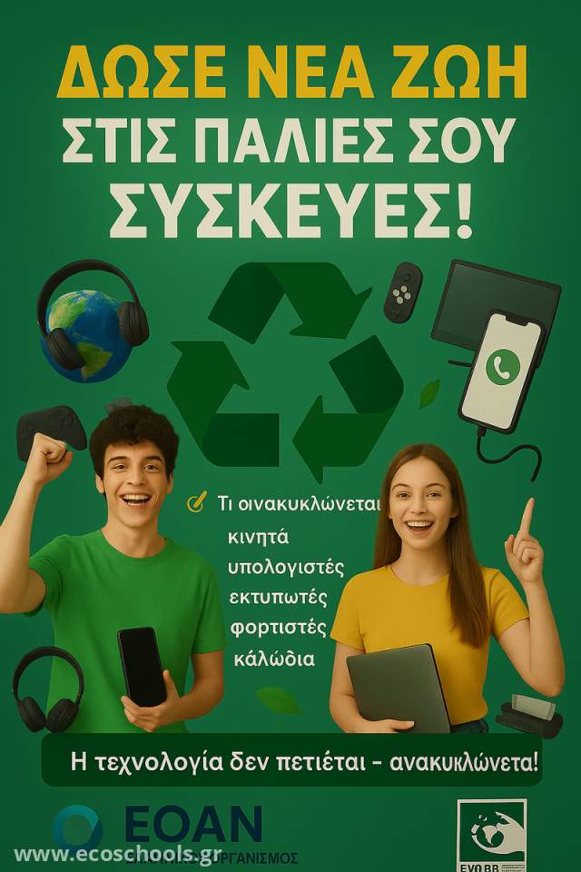 • Κατασκευάστηκαν αφίσες με χρήση τεχνητής Νοημοσύνης για ενημερωση της σχολικής κοινότητας με αφορμή την Ευρωπαική Εβδομάδα Απομείωσης Αποριμμάτων και την θεματική για το έτος 2025 "Ανακύκλωση Ηλεκτρονικών Συσκευών και Ηλεκτρολογικού Υλικού "