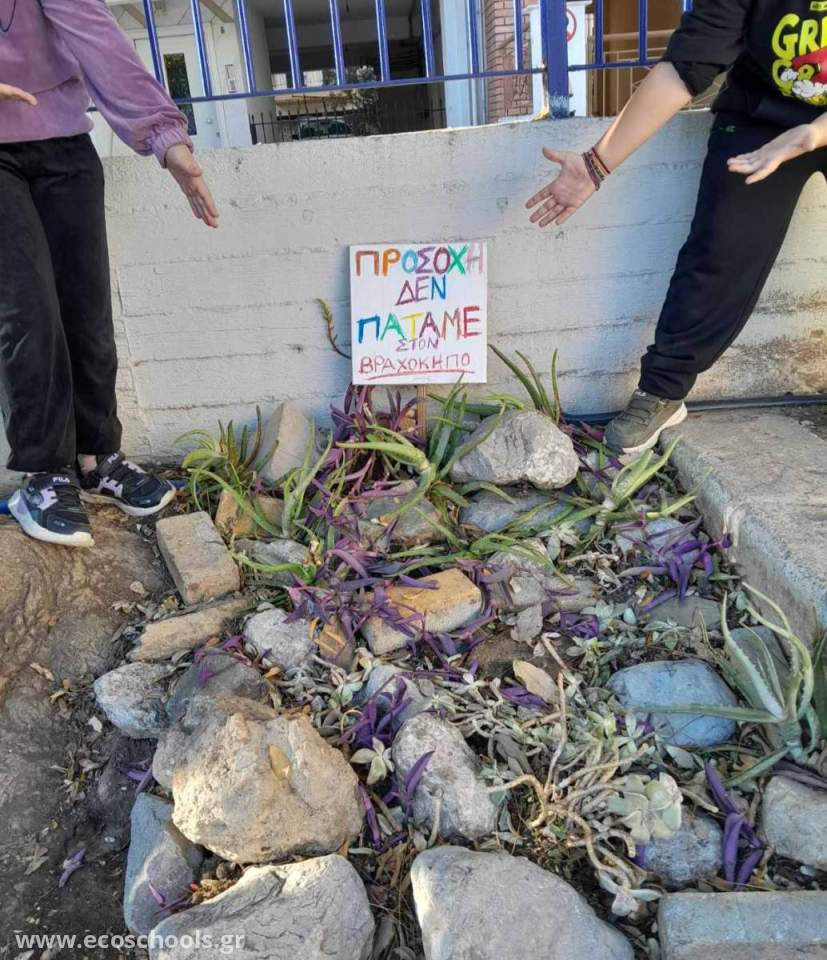 Στόχος: Η αισθητική και βοτανική ανανέωση του υπάρχοντος βραχόκηπου, με ενεργή συμμετοχή των μαθητών, για τη δημιουργία μιας βιώσιμης, όμορφης και εκπαιδευτικής γωνιάς στην αυλή του σχολείου.