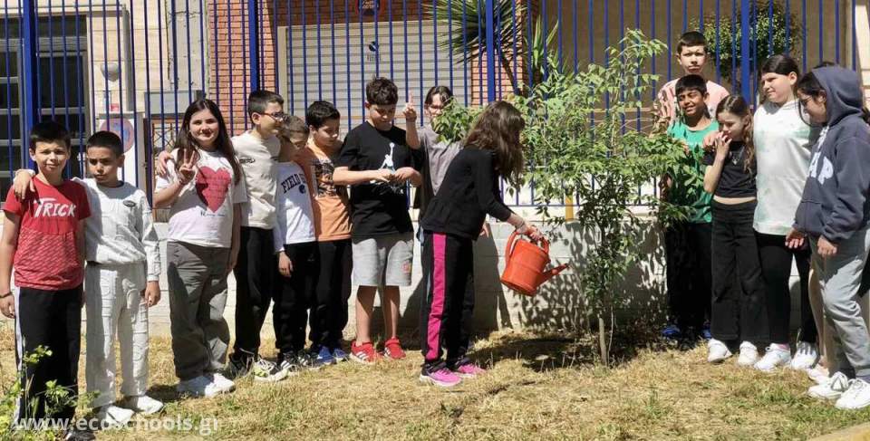 Το πότισμα μικρών δέντρων στο σχολικό προαύλιο είναι μια υπέροχη πρωτοβουλία! Η φροντίδα των δέντρων όχι μόνο διατηρεί τον χώρο όμορφο και δροσερό, αλλά διδάσκει στα παιδιά την αξία της φύσης, της ευθύνης και της προστασίαςτου περιβάλλοντος.