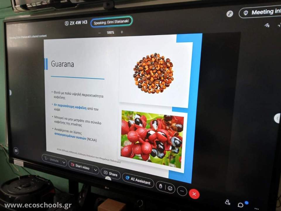 Μαθητές και εκπαιδευτικοί του σχολείου μας παρακολούθησαν με ιδιαίτερο ενδιαφέρον την εισήγηση «Αλήθειες και Μύθοι για τα Ενεργειακά Ποτά», την οποία παρουσίασαν η Υποψήφια Διδάκτωρ κα Ειρήνη Σφακιανάκη, Ειδικό Τεχνικό Εργαστηριακό Προσωπικό (Ε.Τ.Ε.Π.) του Τμήματος Επιστημών Διατροφής και Διαιτολογίας του Ελληνικού Μεσογειακού Πανεπιστημίου, και η Υποψήφια Διδάκτωρ κα Θεοδώρα Μπαλαφούτη του ίδιου Τμήματος.