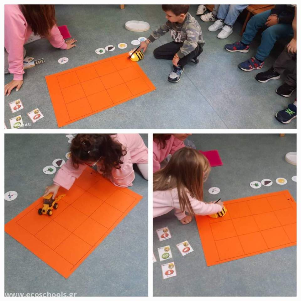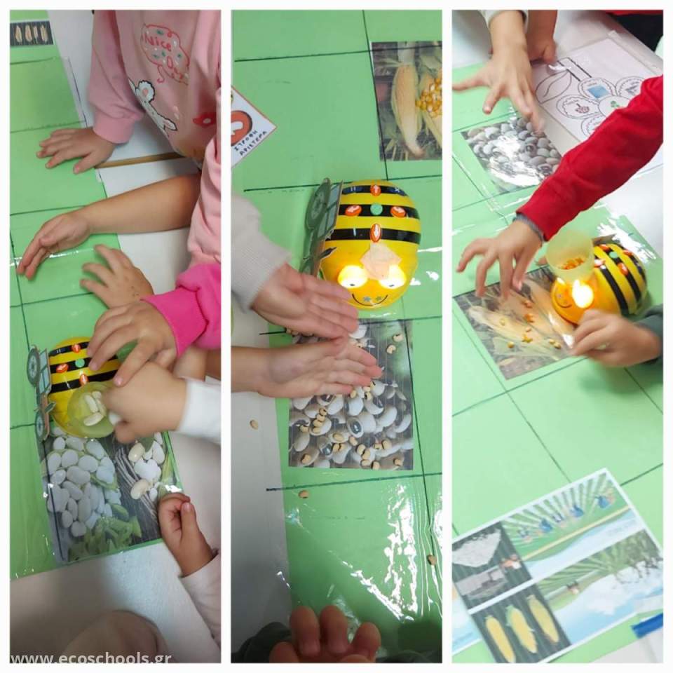 κάθε ομάδα προγραμμάτισε το Bee-Bot-τρακτεράκι ώστε να φτάσει στο δικό της χωραφάκι και φύτεψε τα σπόρια που κουβαλούσε, όπως σιτάρι, καλαμπόκι και φασόλια. Έτσι, μέσα από αυτή την εμπειρία τα παιδιά έμαθαν τι είναι ο προγραμματισμός, πώς δίνουμε σωστές και ακριβείς εντολές, πώς συνεργαζόμαστε σε ομάδα και πώς η τεχνολογία μπορεί να συνδεθεί με τη φύση.
