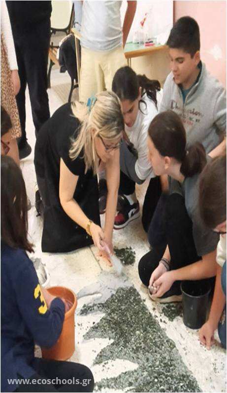 Μαθητές και εκπαιδευτικοί στη δημιουργία του ψηφιδωτού